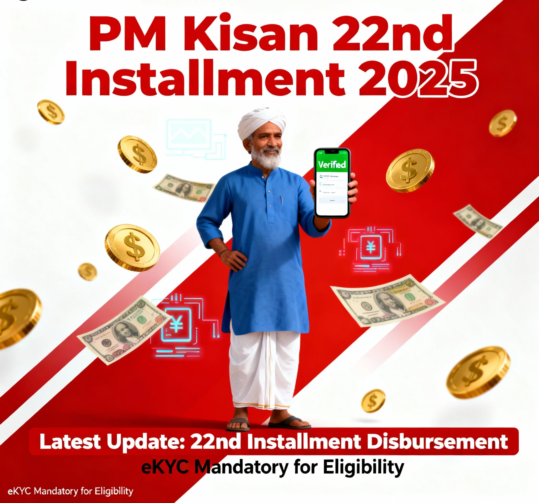 क्या आप भी PM Kisan Samman Nidhi Yojana के तहत ₹2000 की अगली किस्त का इंतजार कर रहे हैं? आपकी पिछली 21st किस्त सफलतापूर्वक क्रेडिट हो गई या अभी भी eKYC या स्टेटस चेक की टेंशन है? अच्छी खबर! PM Kisan 22nd Installment 2025 की तैयारी शुरू हो चुकी है, जो 21st किस्त के बाद फार्मर्स के लिए नई राहत लेकर आएगी। केंद्र सरकार ने हाल ही में 21st किस्त के लिए ₹19,000 करोड़ से अधिक जारी किए हैं, और अब 22nd किस्त पर फोकस शिफ्ट हो गया है। अनुमान है कि यह किस्त फरवरी-मार्च 2026 तक रिलीज हो सकती है, लेकिन डिले से बचने के लिए अभी से eKYC अपडेट और बेनिफिशरी स्टेटस चेक करें। यह पोस्ट आपको पूरी गाइड देगी—रिलीज डेट से लेकर लाभार्थी अपडेट तक—ताकि आपकी किस्त समय पर आपके खाते में आ जाए। लाखों फार्मर्स जैसे आप, इस स्कीम से सालाना ₹6000 की मदद पा रहे हैं, और 22nd किस्त इसे और मजबूत बनाएगी।​